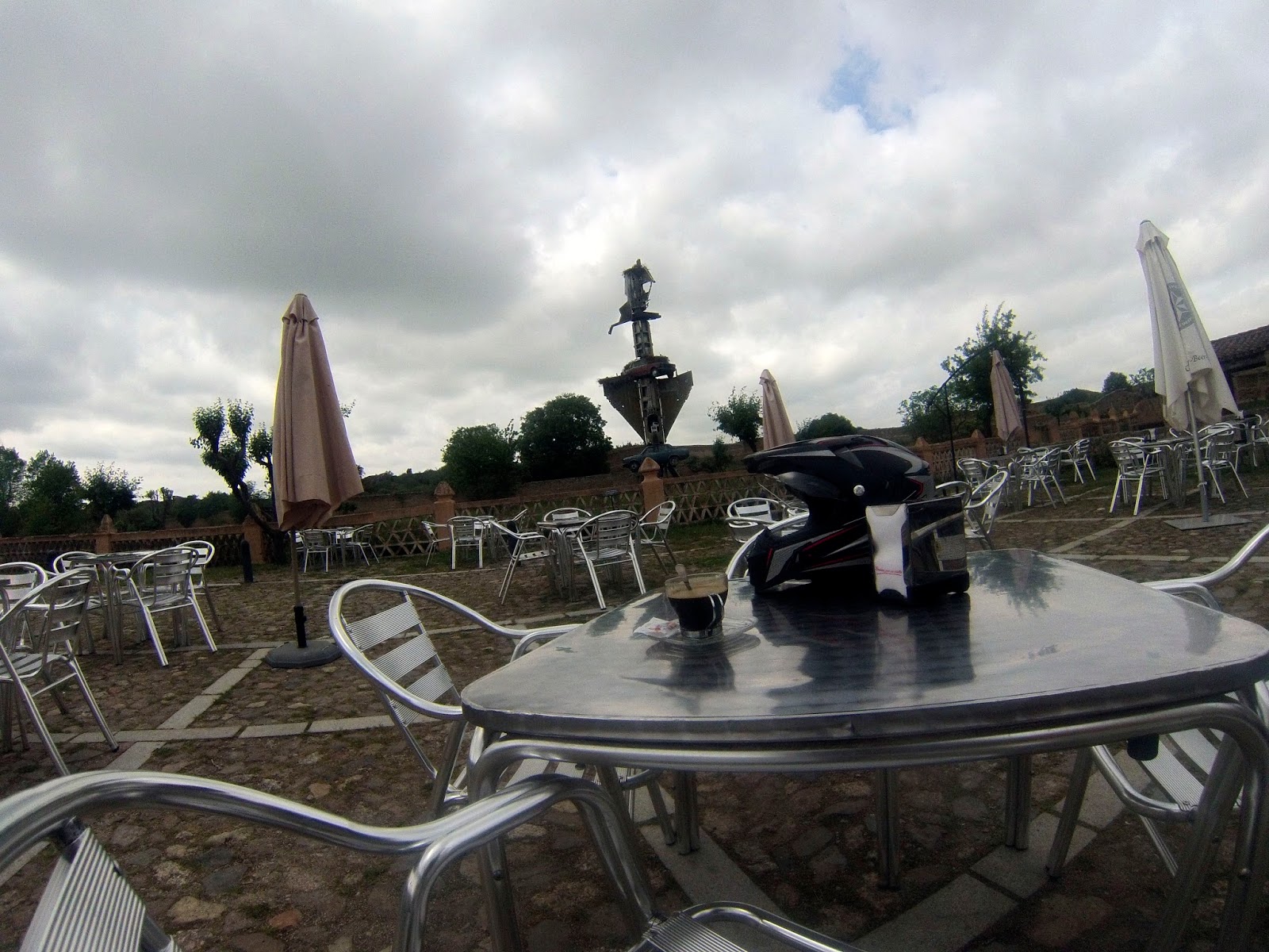 Finalmente, fui al Monumento Natural de Los Barruecos (otro viejo conocido) para comer en un área reservada para ello. Después de tomar café en el incomparable marco del Museo Vostell inicié la última parte de la ruta, la que me llevaría durante unos diez kilómetros hasta el enlace con la carretera de Cáceres a Badajoz. Estas pistas también son fáciles al principio, se van estrechando poco a poco y en ellas me encontré charcos de barro con roderas de tractor; nada grave, aunque las ruedas no asentaban en tales fondos y casi todos los crucé “dando bandazos”.